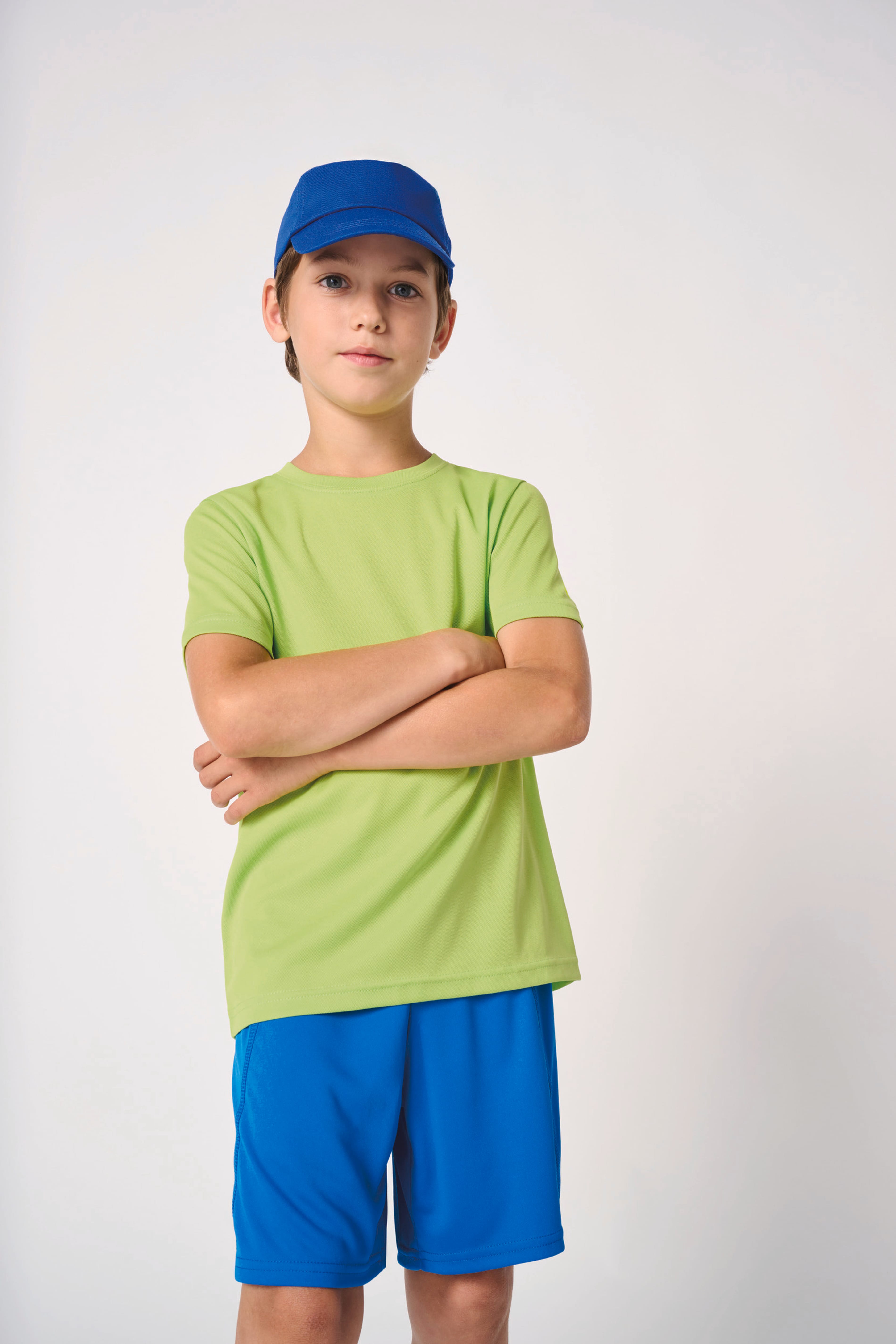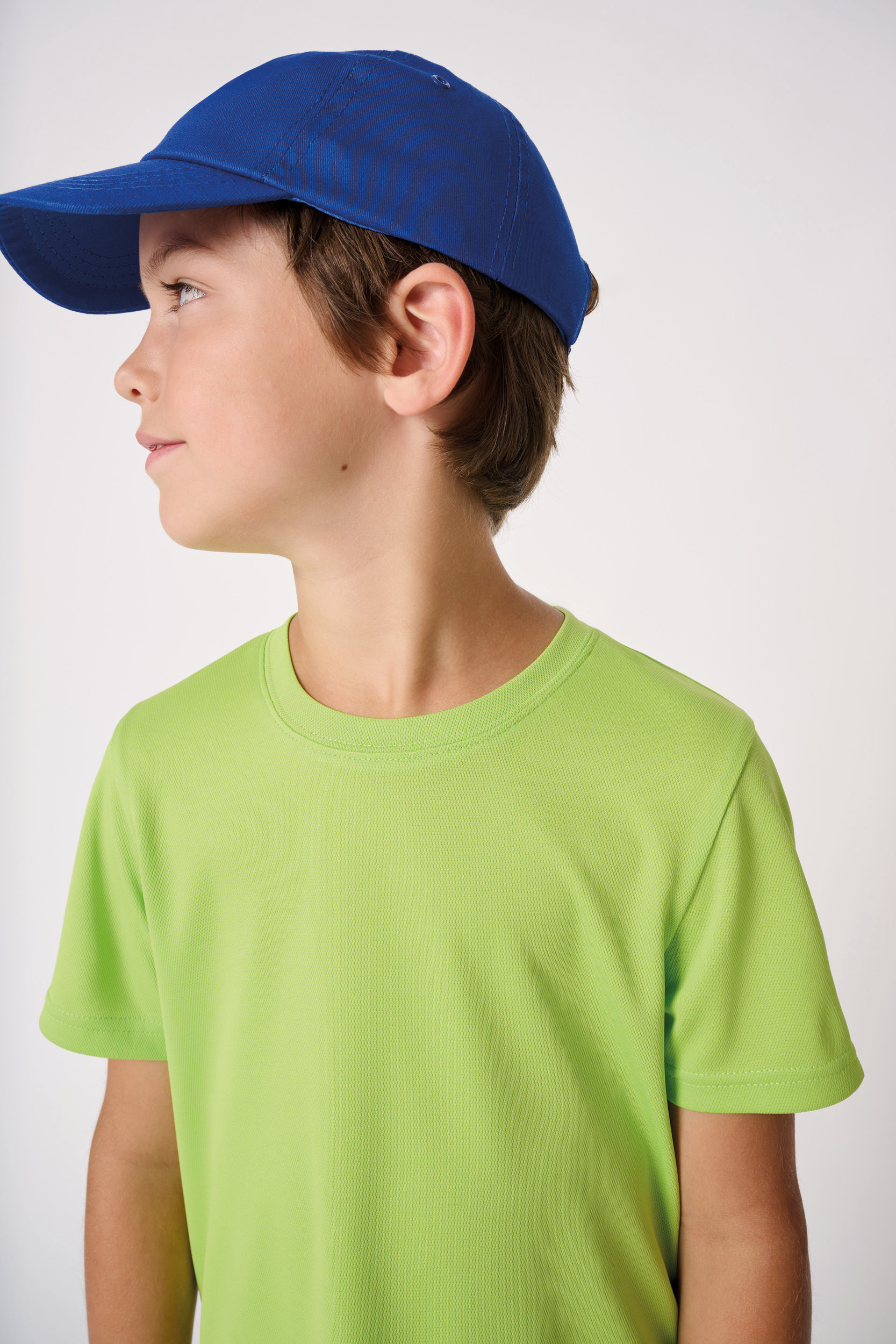 100% polyester. Piqué mesh fabric. Lightweight, quick-drying fabric. Straight fit. Crew neck in piqué mesh with double topstitching. Tone-on-tone inner neck tape. Double-needle finish at sleeve and bottom hems. Tear-away brand label.
