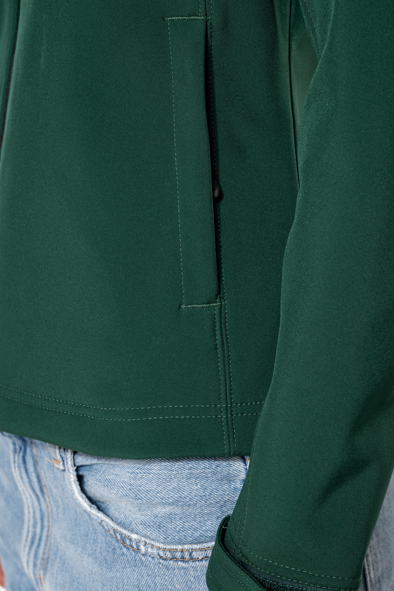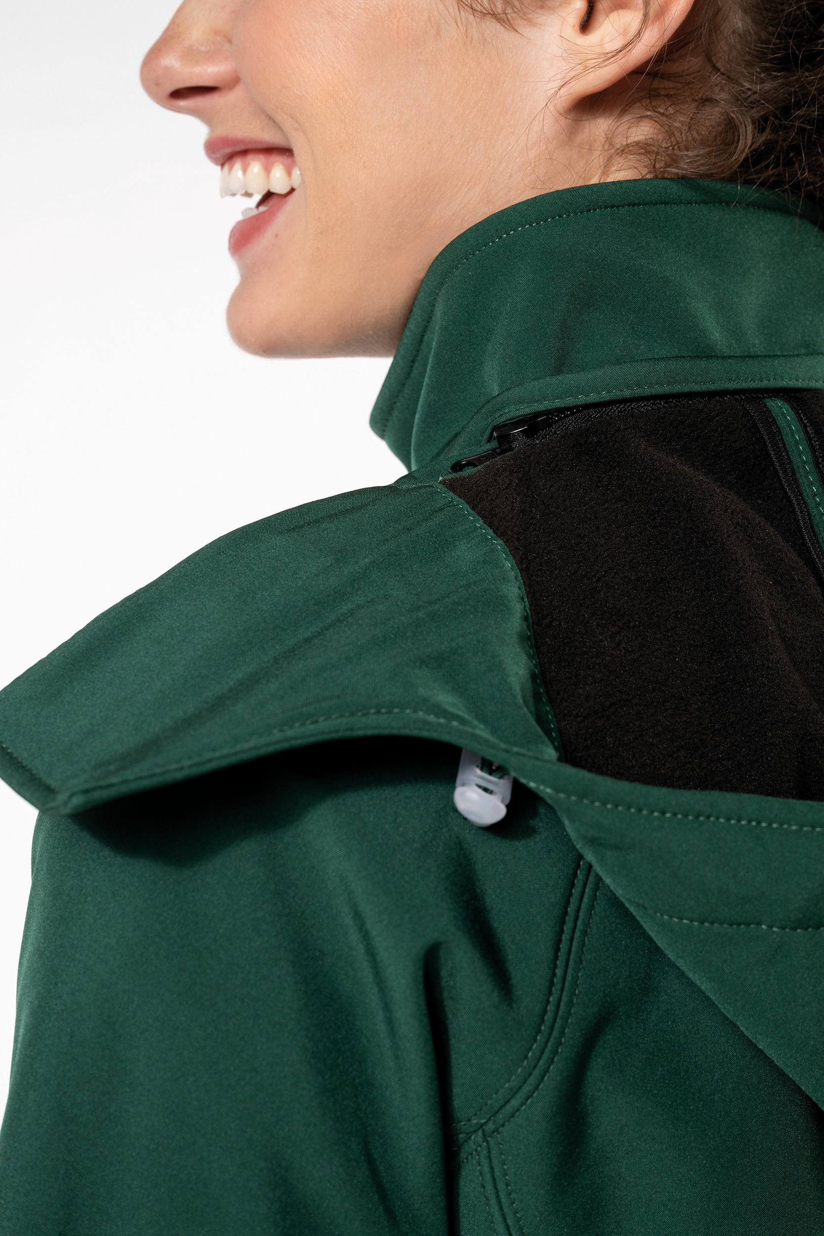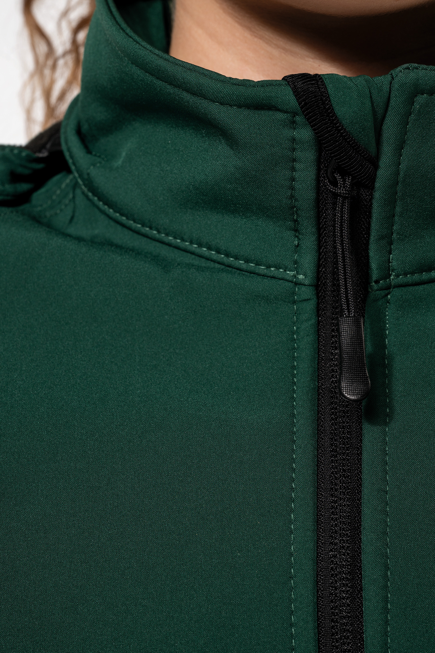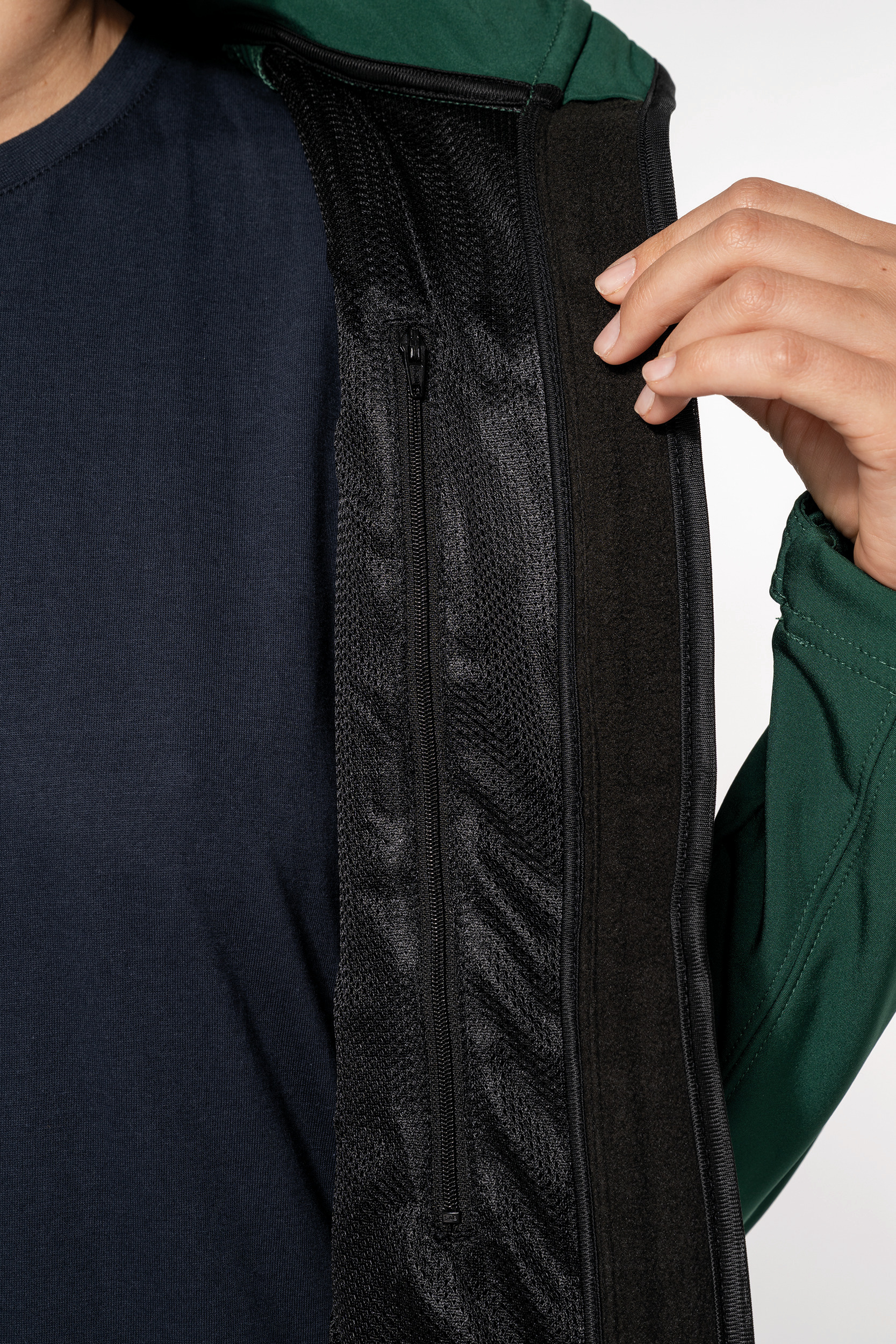 95% polyester/5% elastane. Triple-layer bonded fabric. 1000 gsm/24h breathable and 5000 mm water-resistant. Performance membrane mid layer. Anti pill micro fleece inner layer. Raglan sleeves. Zip through front. 2 front zipped pockets. 1 zipped chest pocket on right side. Detachable hood with drawcord and grip strip. Adjustable cuffs with grip strip. Invisible zip access at inner chest for decoration.