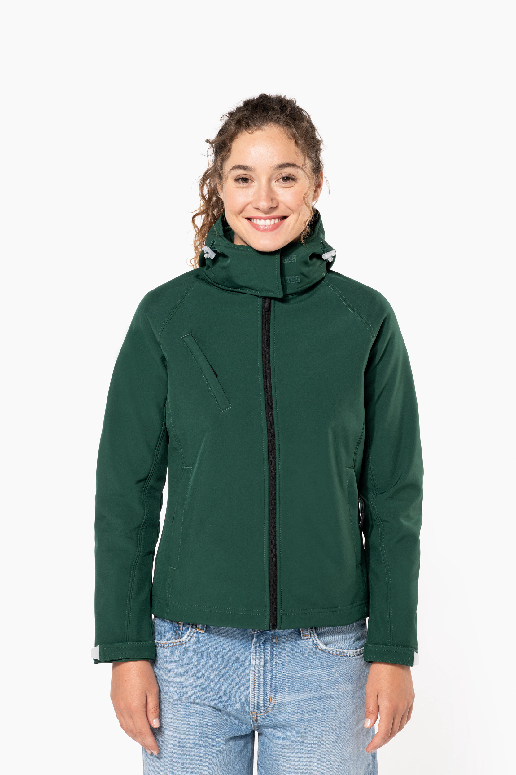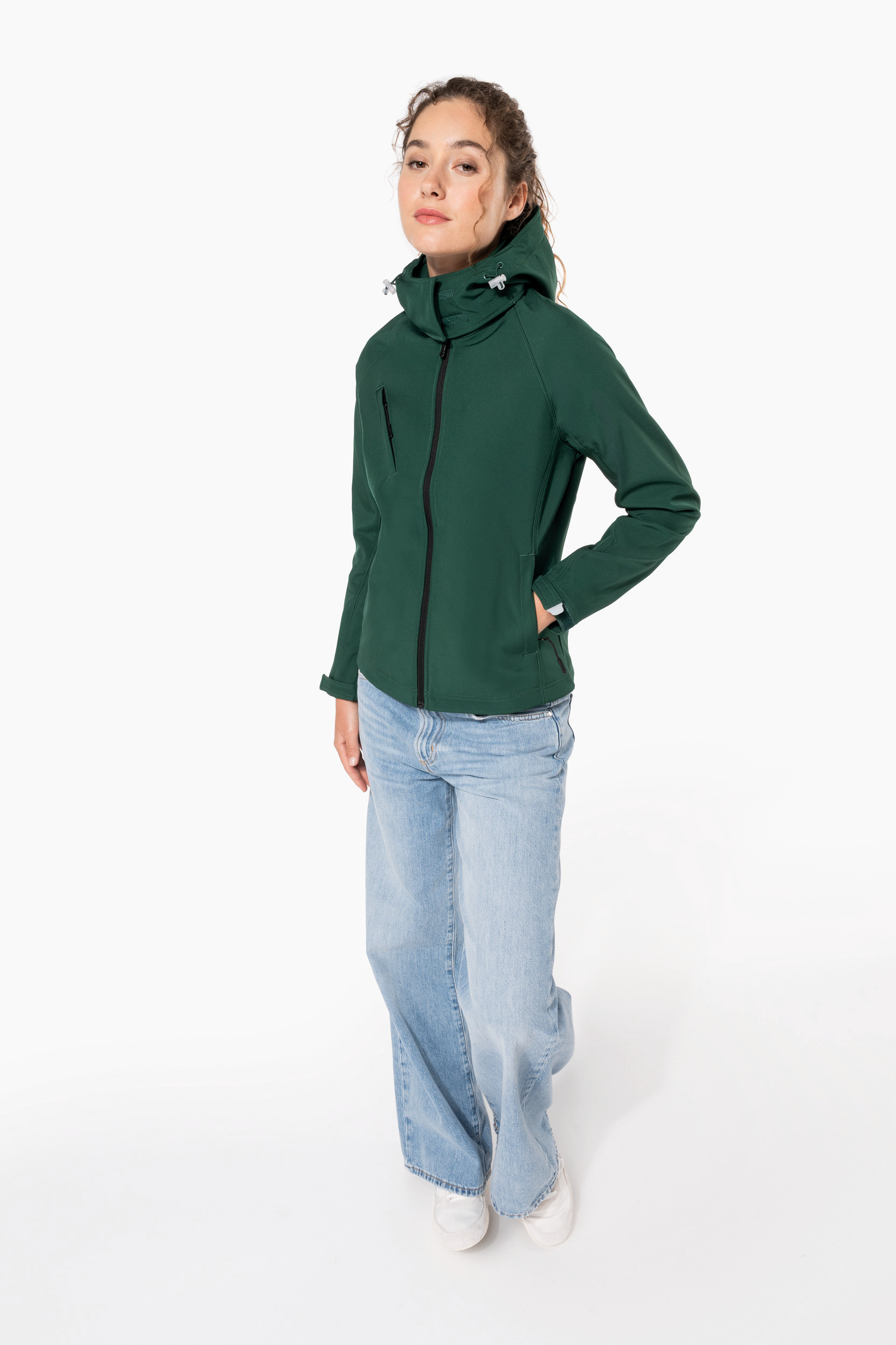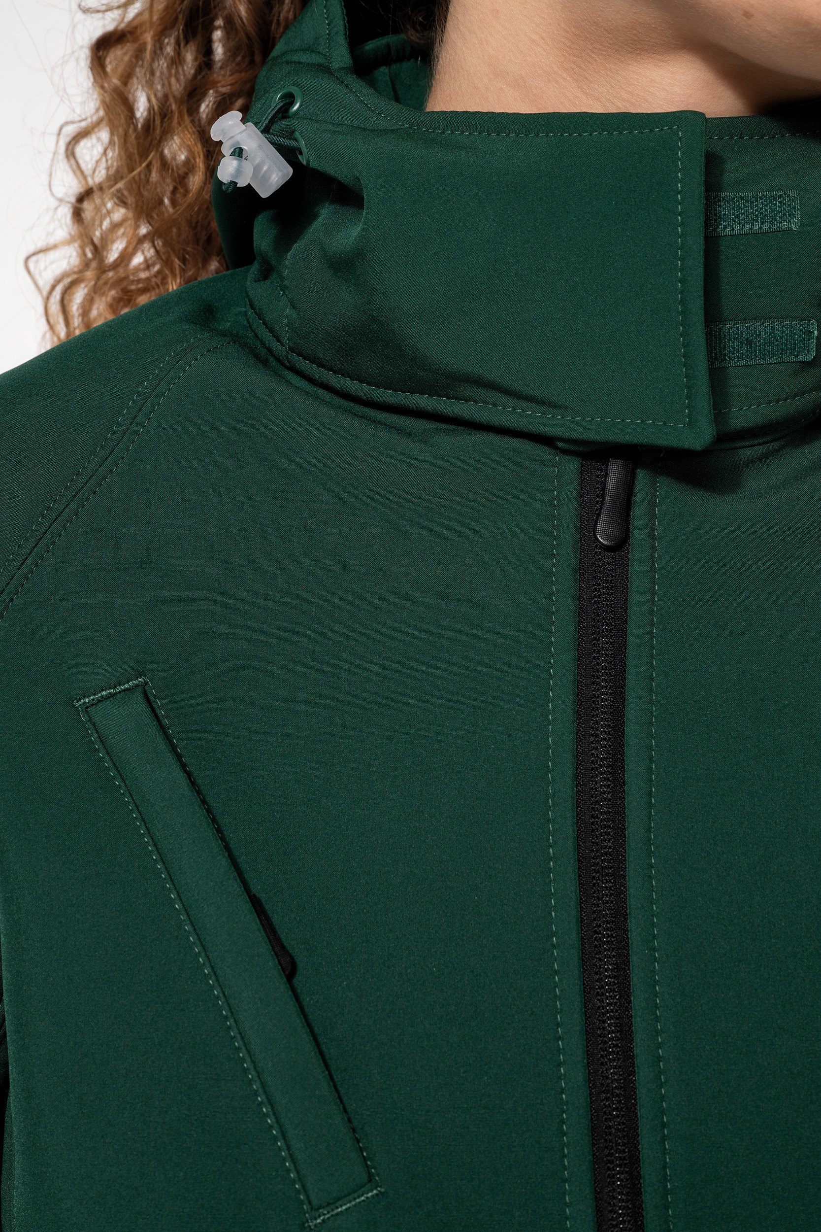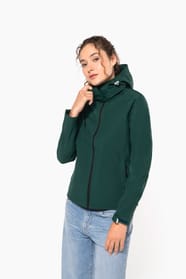95% polyester/5% elastane. Triple-layer bonded fabric. 1000 gsm/24h breathable and 5000 mm water-resistant. Performance membrane mid layer. Anti pill micro fleece inner layer. Raglan sleeves. Zip through front. 2 front zipped pockets. 1 zipped chest pocket on right side. Detachable hood with drawcord and grip strip. Adjustable cuffs with grip strip. Invisible zip access at inner chest for decoration.